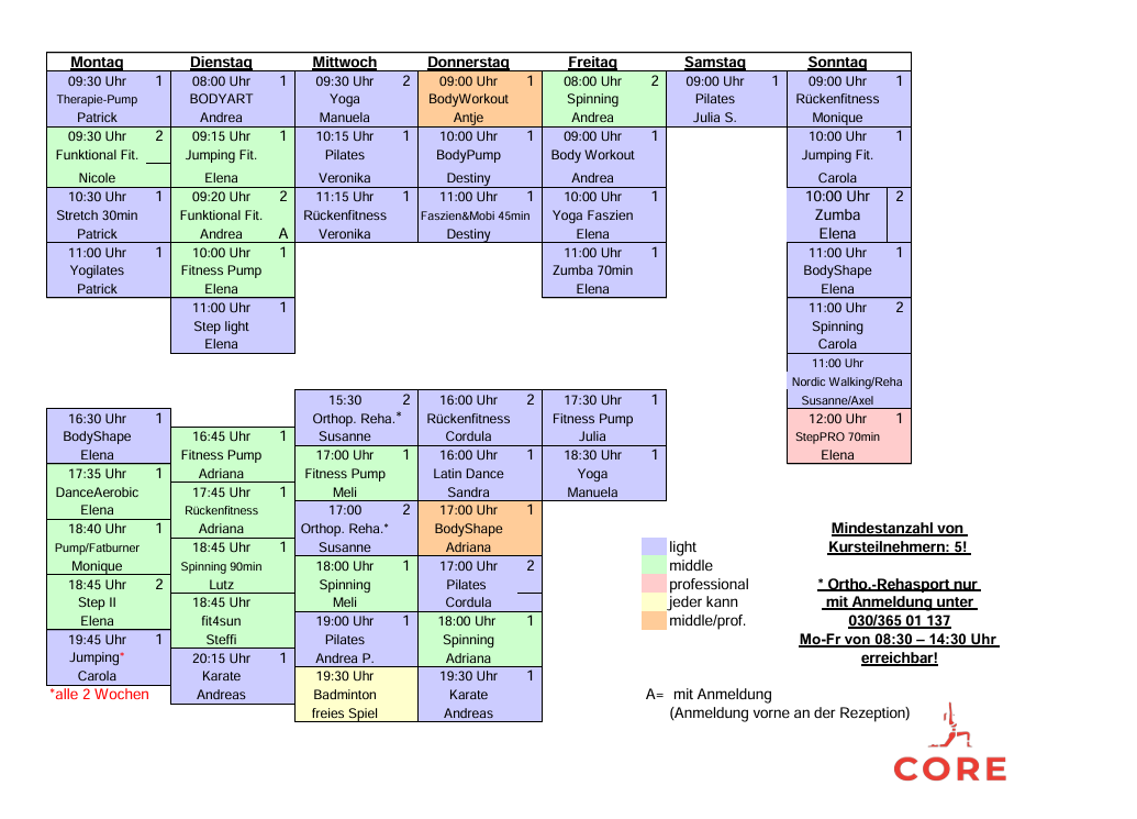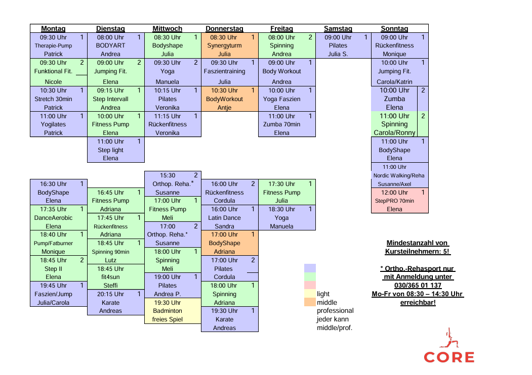 Die Auswahl an Angeboten ist bei uns sehr vielseitig. Neben dem normalen Fitness- und Wellnessbereich wollen wir mit CORE eine Kombination aus Physiotherapie & Fitness bieten und somit das Studio mit der Physiotherapie in der Havellandhalle verbinden.